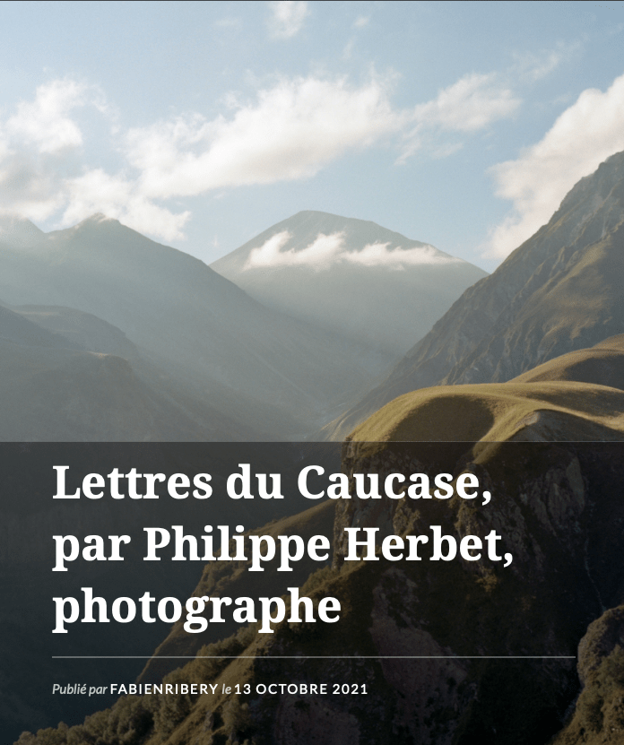 Lettres du Caucase sur le blog l’Intervalle de Fabien Ribery Published on 21 October 2021 by Philippe HerbetLeave a comment https://lintervalle.blog/2021/10/13/lettres-du-caucase-par-philippe-herbet-photographe/ https://lintervalle.blog/2021/10/13/lettres-du-caucase-par-philippe-herbet-photographe/