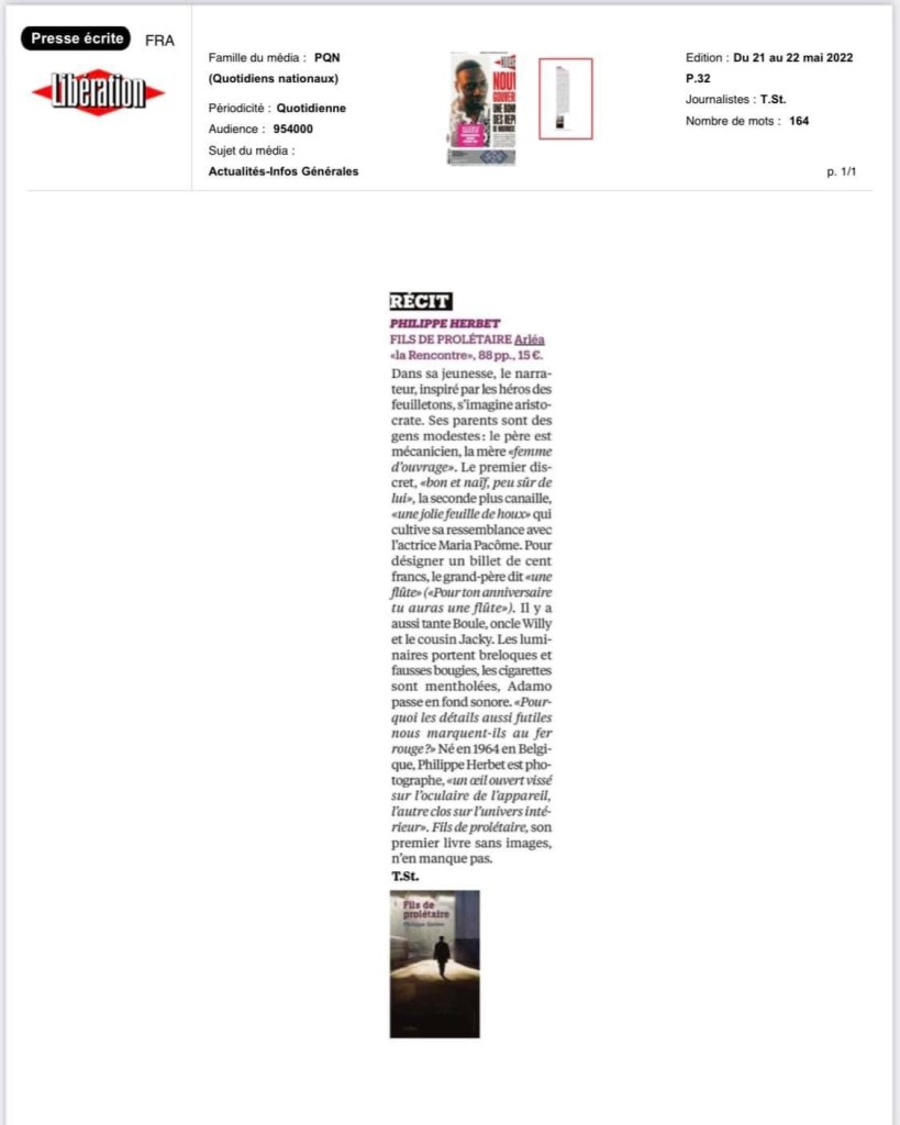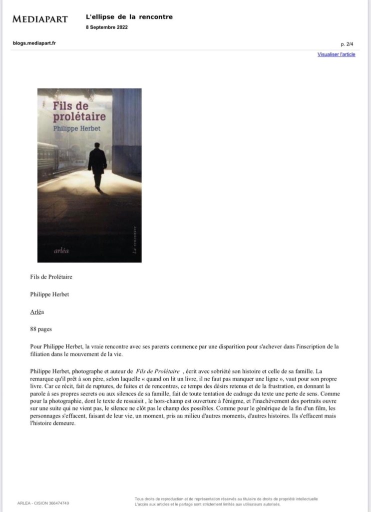 Fils de prolétaire, dans la revue littéraire Dissonances Published on 8 November 2023 by Philippe HerbetLeave a comment